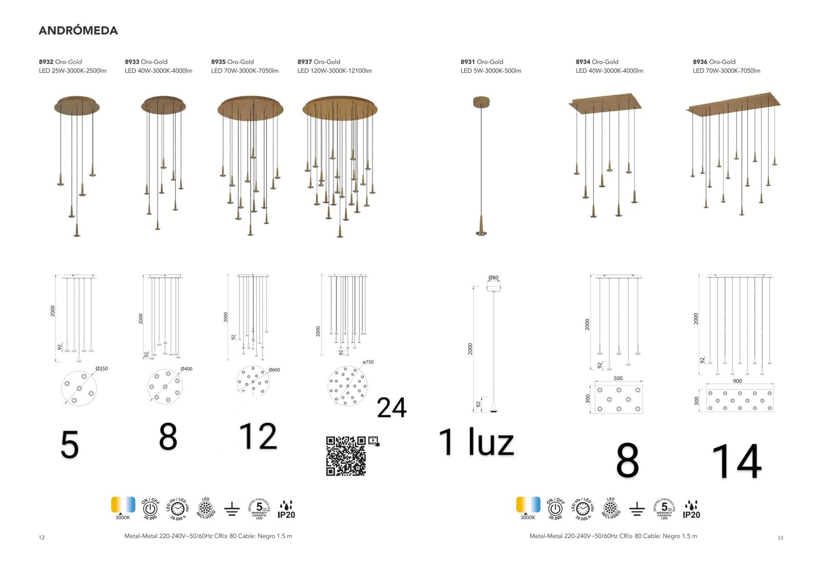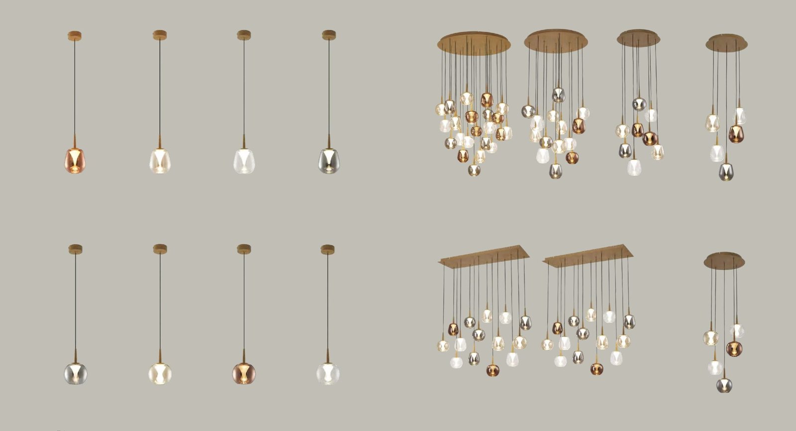 7 estructuras de lámpara que van desde una única luz hasta impresionantes composiciones de 24 luces.