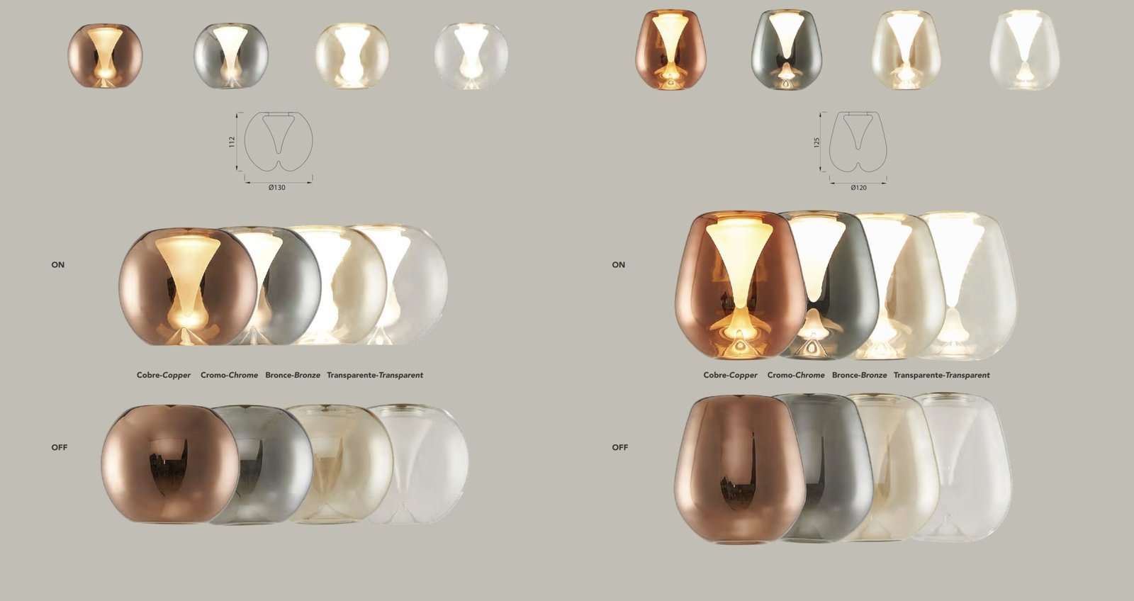 8 modelos de tulipas con formas elegantes y acabados exclusivos.
