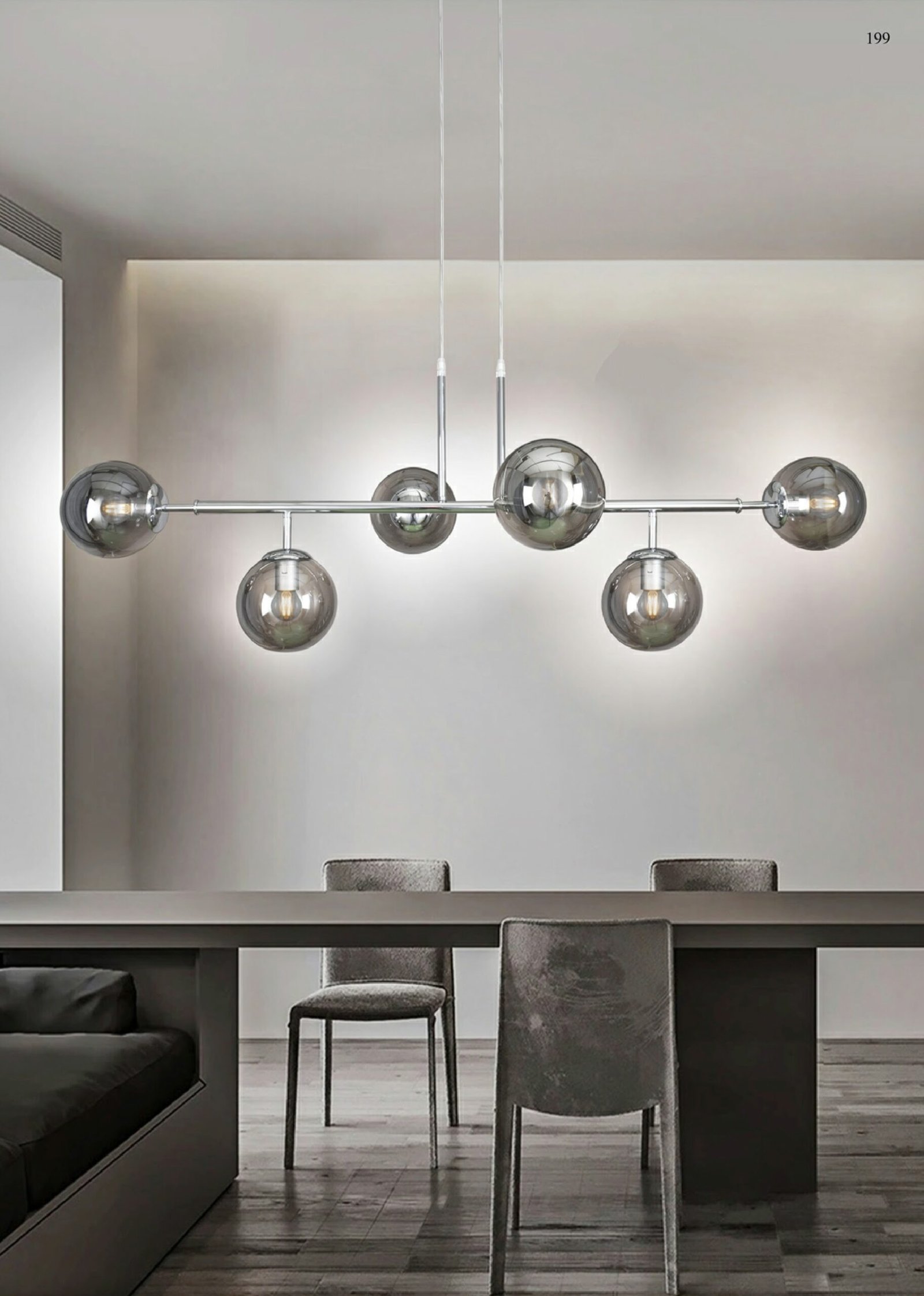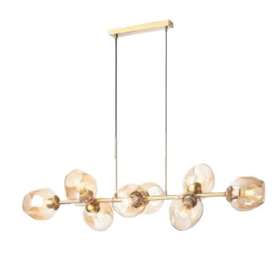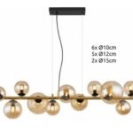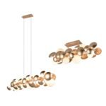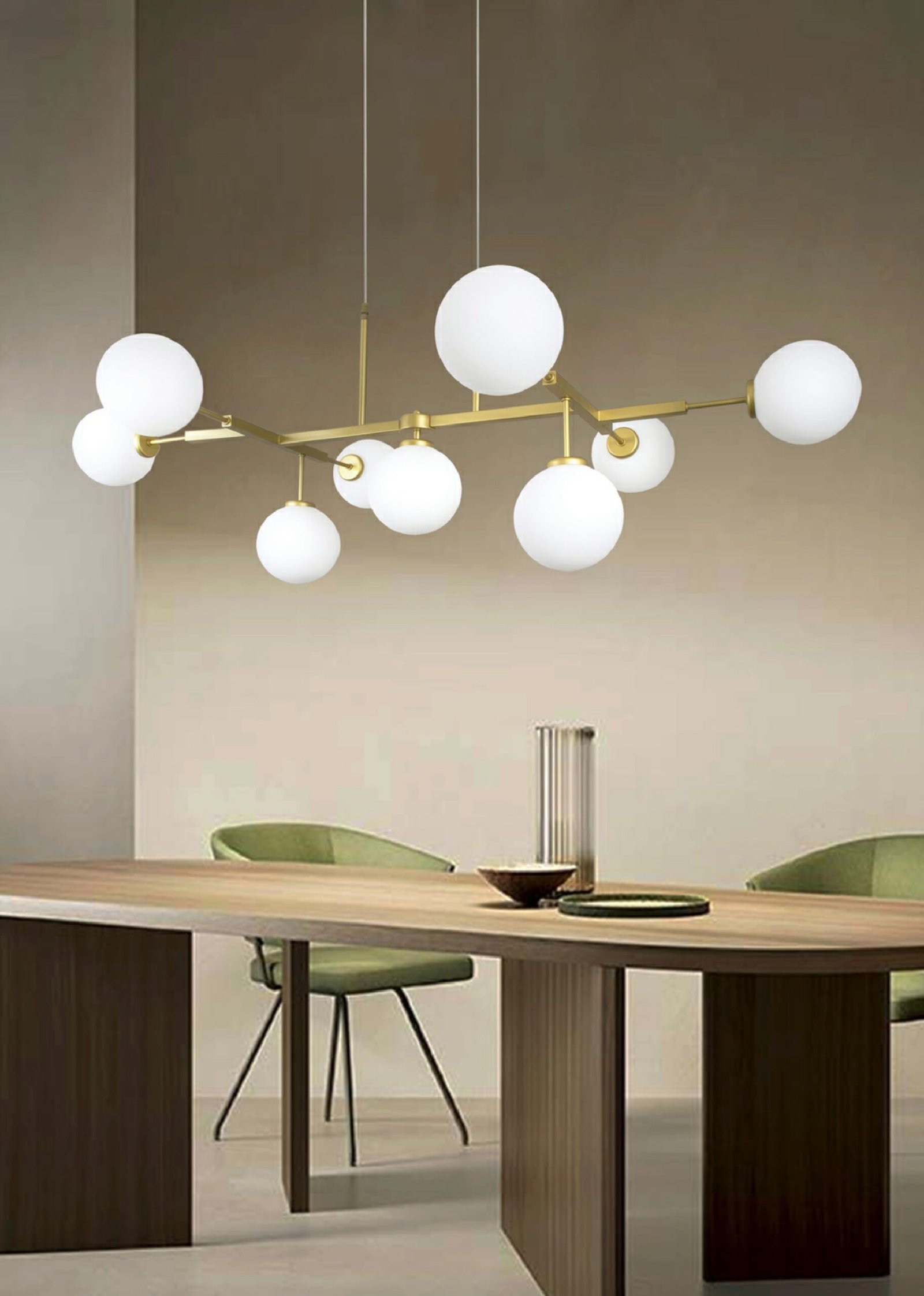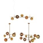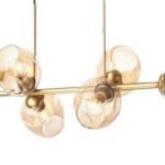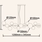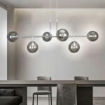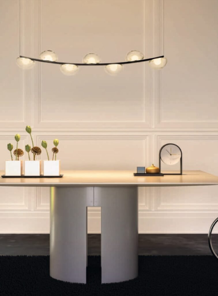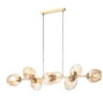 Donde predominan las tulipas de cristal con acabados en transparente, opal blanco, cristal ámbar. Diferentes medidas y numero de luces para cubrir la iluminación de la mesa y evitar sombras. La principal características de todas estas lámparas es la medida, todas tienen entre de 100 cm y 120cm de largo.