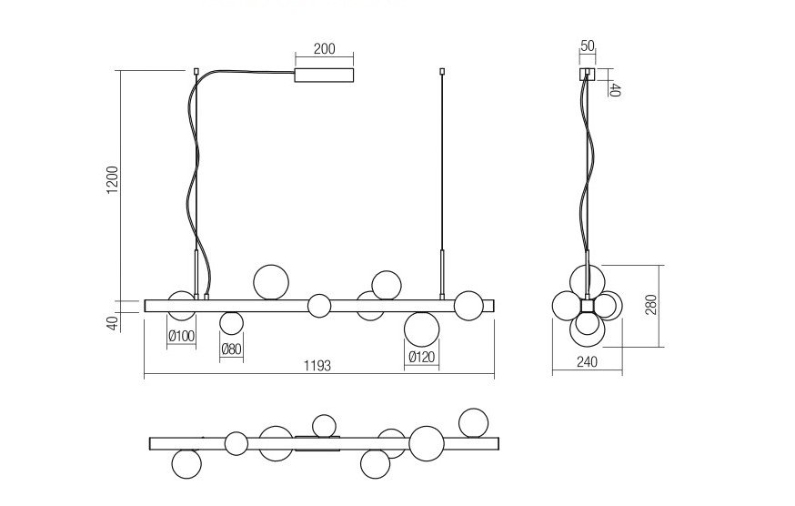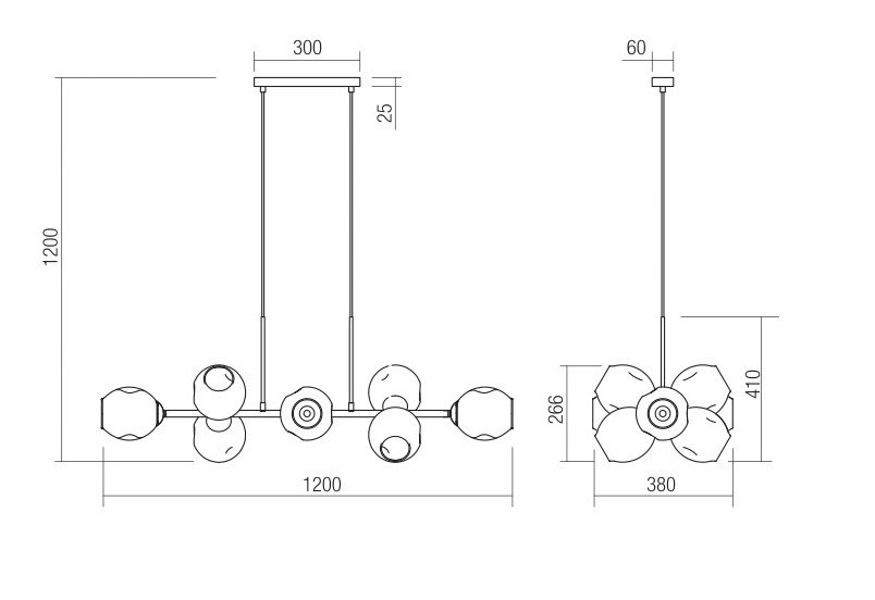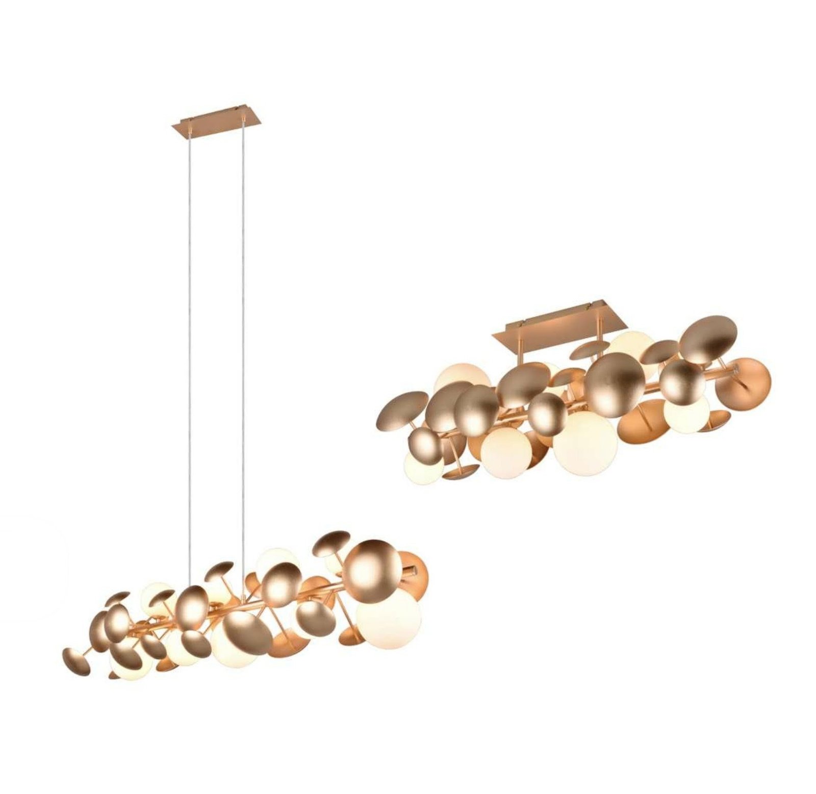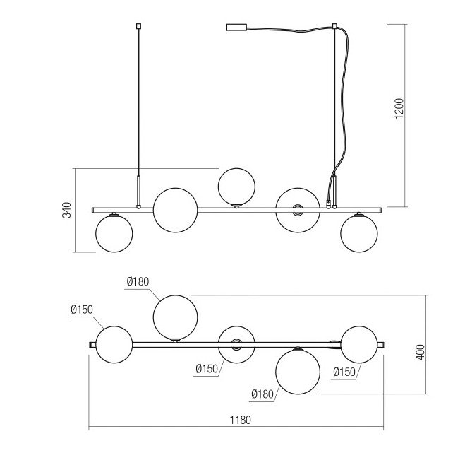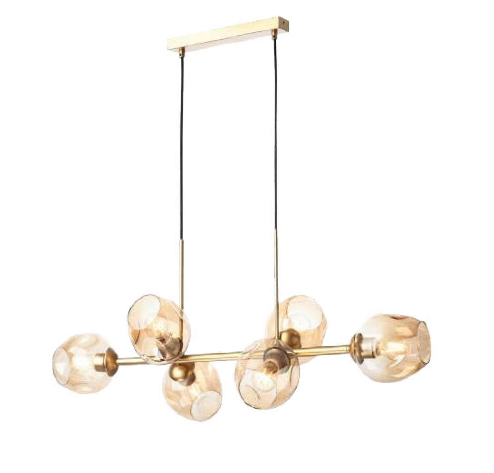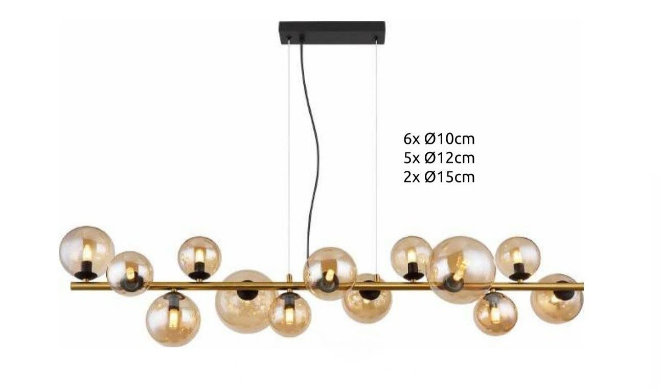 Donde predominan las tulipas de cristal con acabados en transparente, opal blanco, cristal ámbar. Diferentes medidas y numero de luces para cubrir la iluminación de la mesa y evitar sombras. La principal características de todas estas lámparas es la medida, todas tienen entre de 100 cm y 120cm de largo.